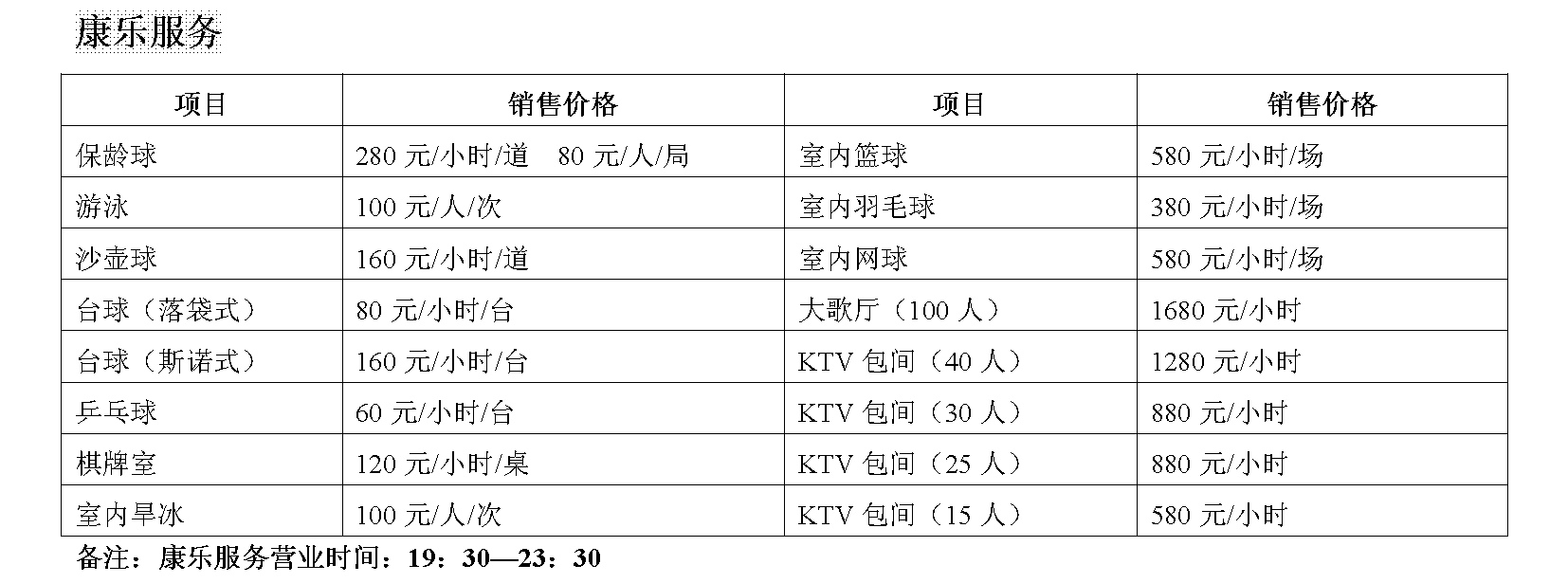 康乐服务